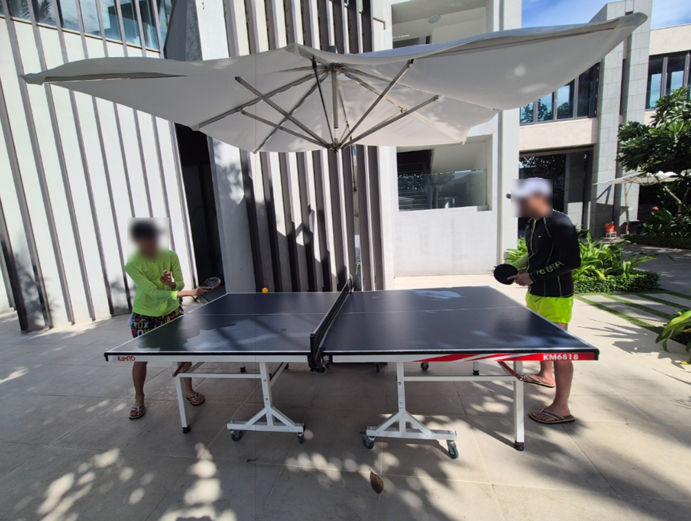 [탁구장은 풀장 바로 근처에 있고 무료입니다.]