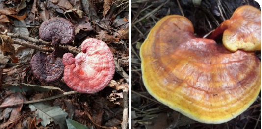 | 성질 및 모양 | 영지버섯은 영지초, 적지, 목영지, 균영지 등 별명이 많은 버섯으로 참나무 곁에서 자생하며 모양이 우산같이 생겼고 딱딱하고 맛이 씁니다. 영지는 다른 식용버섯과 다르게 죽은 후에도 잘 썩지 않고 광택까지 변하지 않는 것이 특성이 있습니다. 또한 대와 갓의 표면 모두 광택이 있는 1년생 버섯으로 원형이나 타원형이 있는데 이는 "본초강목"에서 이 영지를 산삼과 더불어 상약 중의 상약으로 취급하며 불로초라 했습니다. |