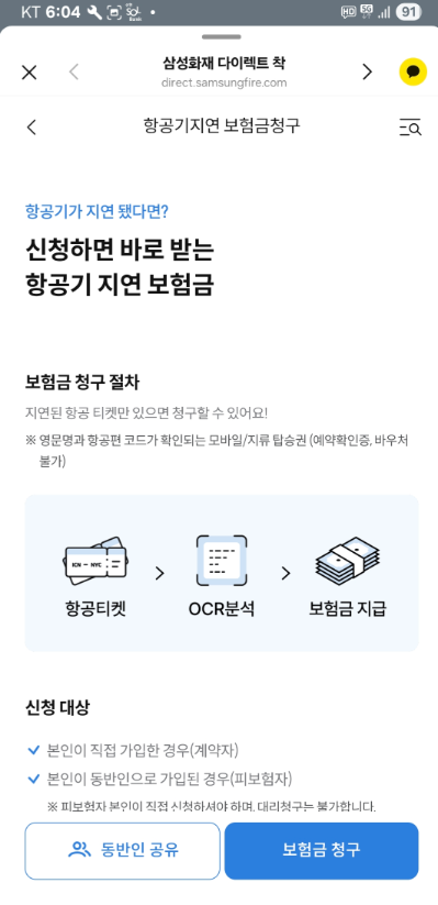 항공기 지연 보험금 청구 / 항공기 지연 보험금 언제 들어오나요? / 비행기 출발 지연 보험 청구 방법 / 항공기 지연금 삼성화재