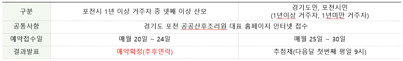 차상위 계층등 기타 자세한 내용은 홈페이지를 참조 (☞경기포천 공공산후조리원 바로가기)