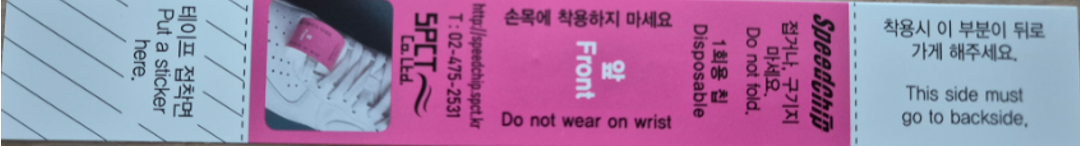 기록칩은 운동화 끈에 앞면(Front)이 보이도록 부착해 주시면 되구요~