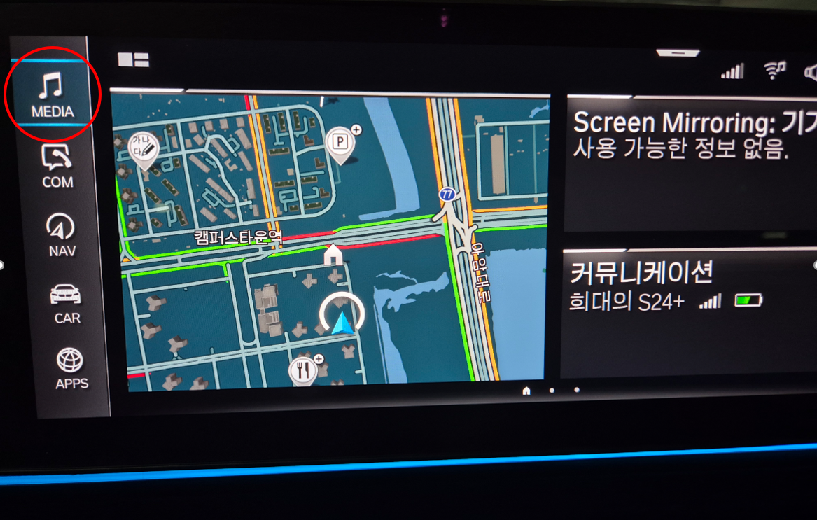 그리고.. 다들 아시겠지만 혹시 모르시는 분이 계실 수 있으니 차량에서 스크린미러링 들어가는 순서도 안내해 드립니다.
