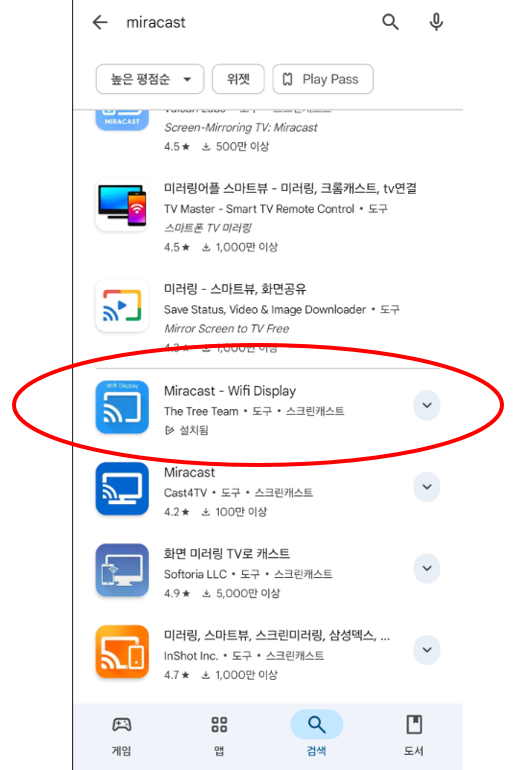 먼저 모바일 Play 스토어에서 'Miracast'를 검색 후 실행을 합니다.