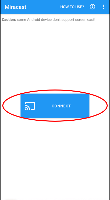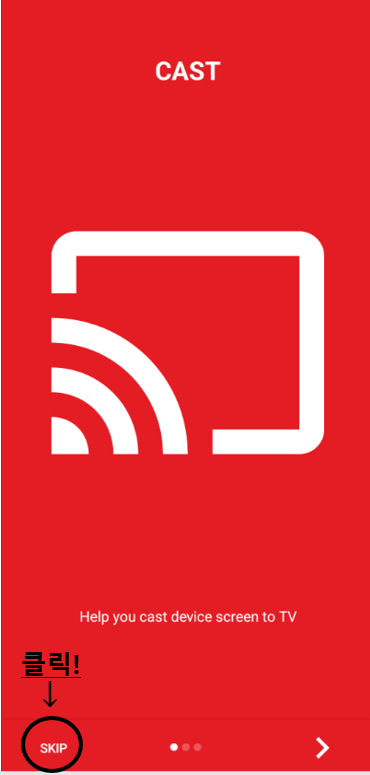 'Miracast'앱 실행 후 좌측 하단에 'skip' 클릭하면 'connect'박스가 보입니다.